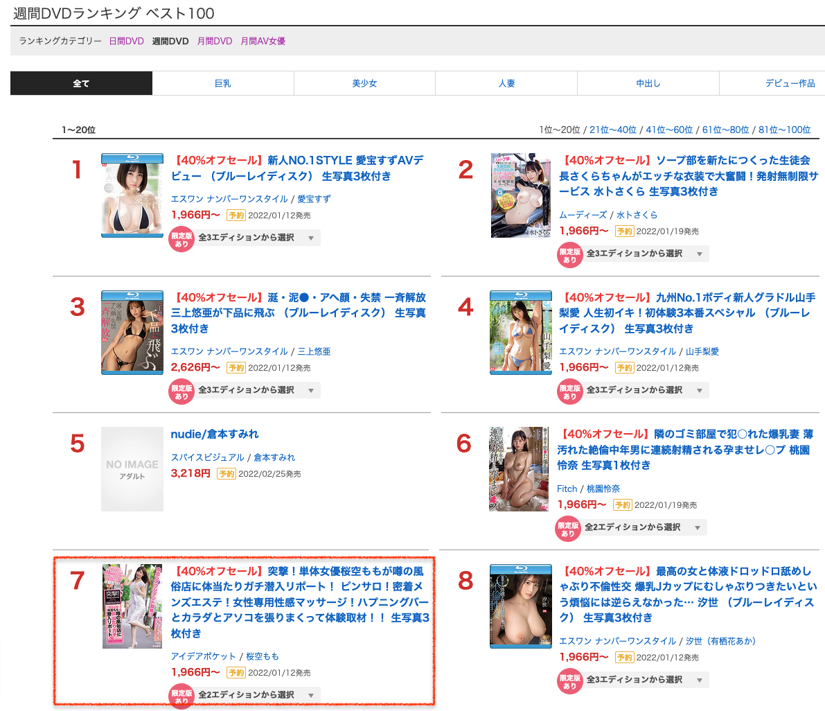 所以在FANZA最新一週的销售排行榜这是ideapocket最卖的作品,突然我也觉得不用去纠结ideapocket為什麼要让桜空もも(樱空桃)中出解禁(但我还是很在乎We are ideapocket让她排位很后面),现在的她销售很好,心情也很不错,IG限动更新得也很勤〜