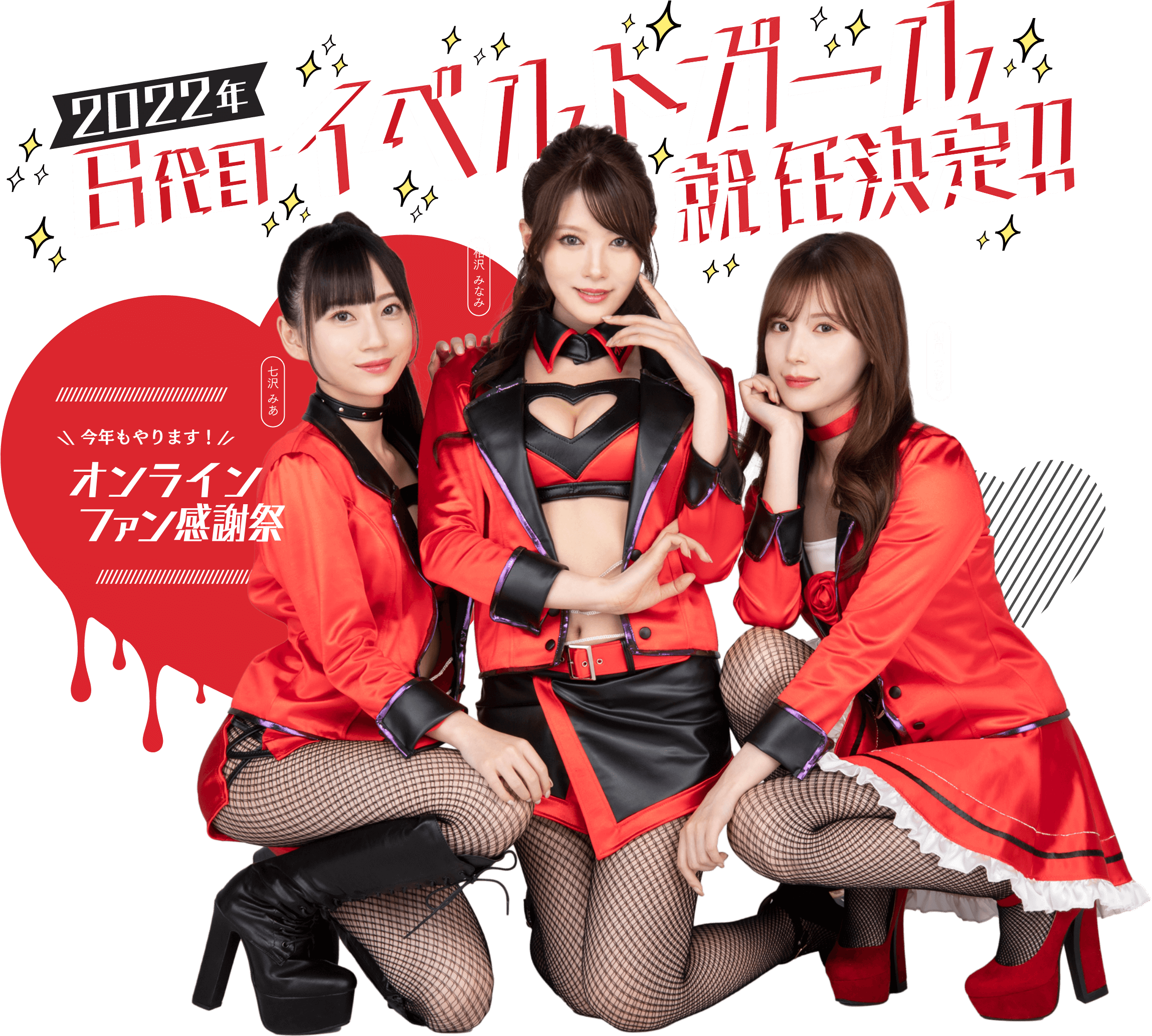 可惜,不是。这是活动网站イベルト新一季的代言人,由左至右分别是七沢みあ(七泽米亚)、明里つむぎ(明里紬)以及相沢みなみ(相泽南),在高桥しょう子(高桥圣子)引退后,イベルト更换代言人,留下我婆明里,另外添加两位社群强者,打造史上最强的宣传阵容: